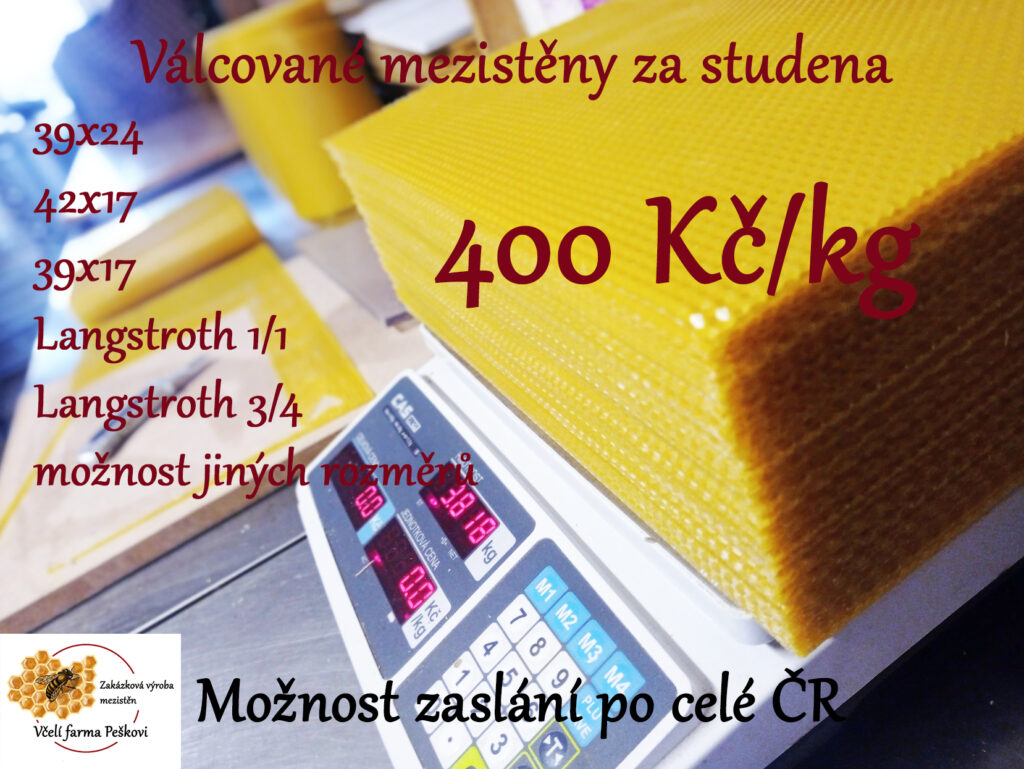 Píše se rok 2023. Já a moje žena bychom Vám rádi představili naši rodinnou firmu – Včelí farma Peškovi. Vyrábíme mezistěny nejen pro sebe, ale i pro ostatní včelaře. Budeme rádi, pokud si necháte vyrobit mezistěny právě u nás!